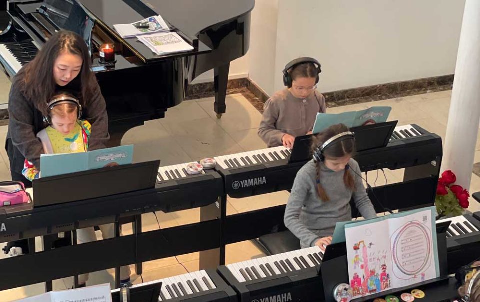 Dans nos cours collectifs, chaque élève bénéficie de son propre piano et utilise un casque pour travailler individuellement sur son morceau, avançant à son propre rythme. Cette méthode permet une concentration optimale et une personnalisation de l’apprentissage, tout en étant immergé dans un environnement collectif stimulant.